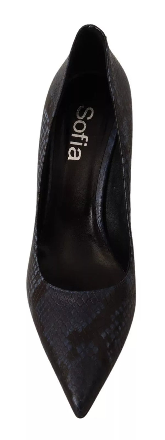 Black Snake Skin Leather Stiletto High Heels Pumps Shoes