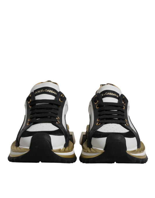 White Gold Black Leather SUPER KING Sneakers Shoes
