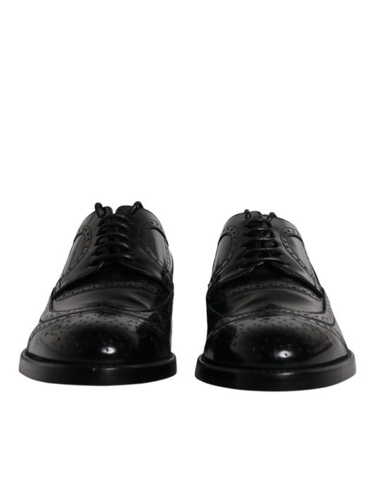 Black Leather Derby Wingtip Formal Shoes