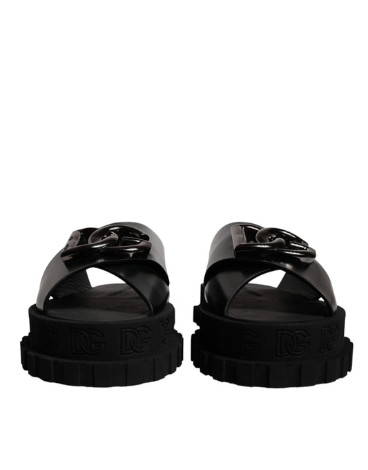 Black Leather DG Criss Cross Slides Sandals Shoes