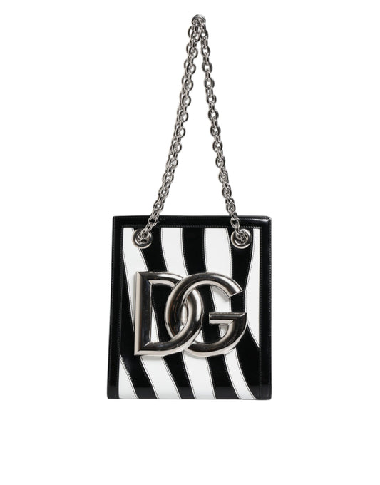 Black White Zebra Patchwork Logo Plaque Shoulder Bag