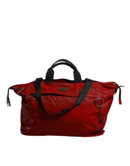 Red Nylon Calfskin Hand Shoulder Duffel Bag