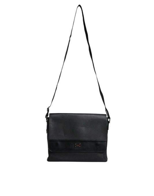 Black Logo Plaque Leather Messenger Shoulder Strap Bag