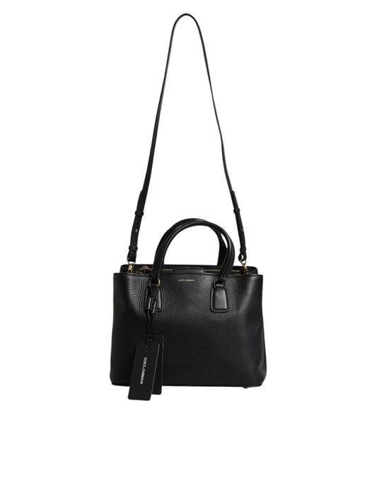 Black Calf Leather Logo Plaque Shoulder Handbag Bag