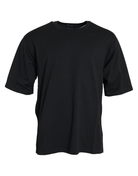 Black Logo Embossed Crew Neck Short Sleeves T-shirt