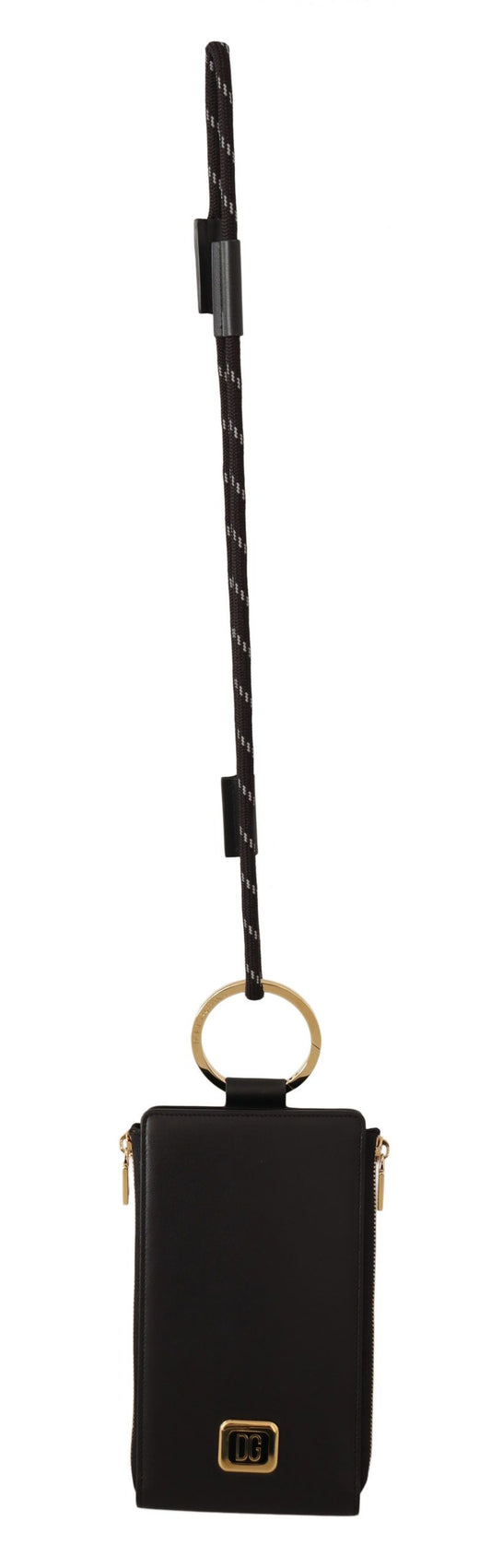 Elegante schwarze Geldbörse mit Riemen aus Leder