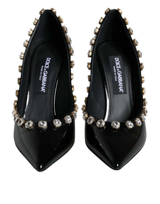 Black Mary Jane Pumps Lace Crystals Heels Shoes