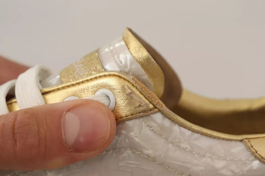 Weiße Leder Gold Rot Herz Sneakers Schuhe