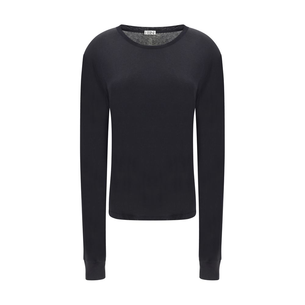 Cotton Boyfriend Long Sleeve Jersey by Éterne, ribbed crew neck, ribbed cuffs, monochrome pattern, regular fit.