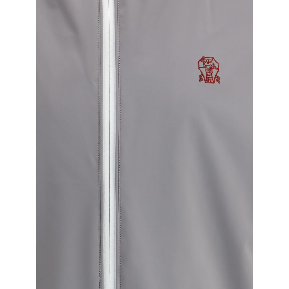 Brunello Cucinelli’s waterproof Jacket is a functional and stylish garment, perfect for tackling the rainiest days without sacrificing style. The model features a drawstring-adjustable hood for personalized protection against the elements. The front closure with a double-slider zipper offers convenience and comfort, while the two zippered side welt pockets provide secure space for personal items. The brand’s iconic contrasting logo on the front adds a distinctive detail, while the elasticized waistband ensures an optimal fit. With a monochrome pattern and a regular fit, this jacket is perfect for those seeking a high-quality, functional and fashionable garment.