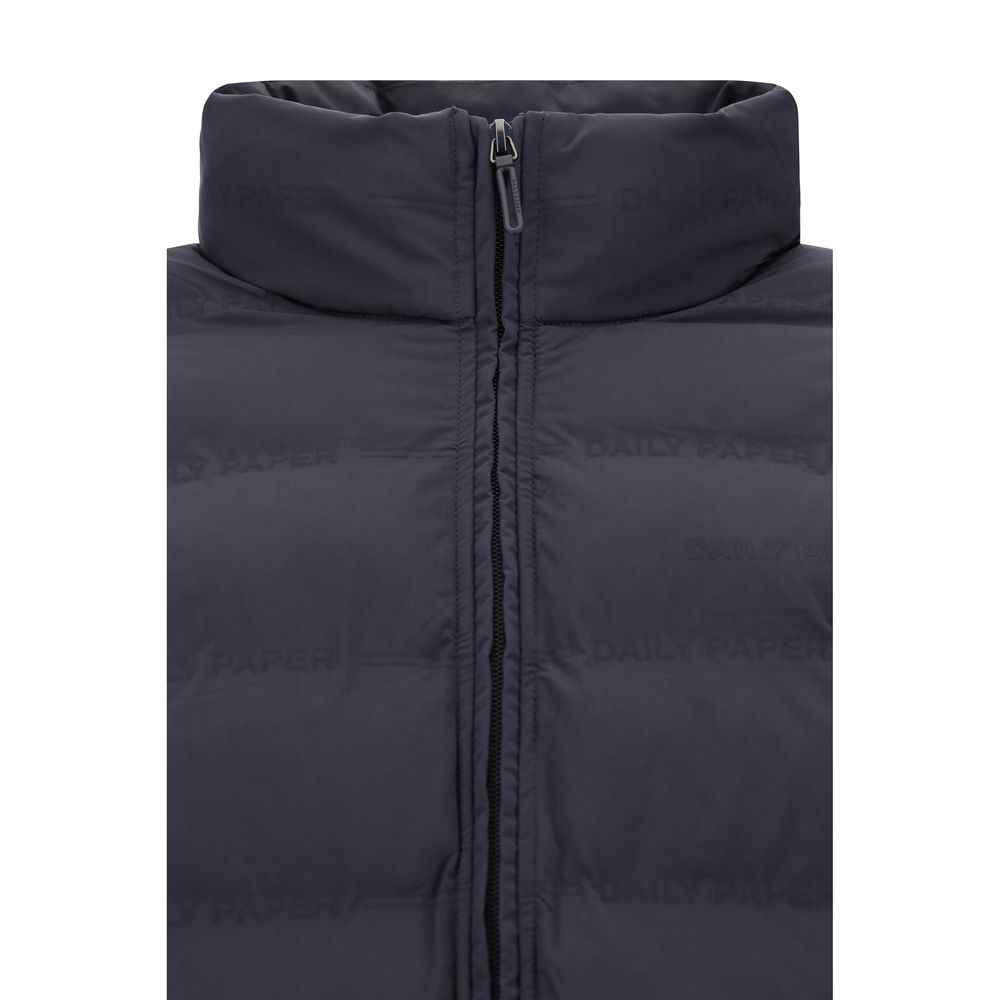 Down Jacket by Daily Paper, front zipper closure, two side zipper welt pockets, elastic cuffs, iconic brand monogram on front, all-over quilted and padded design, monochrome pattern, regular fit.
