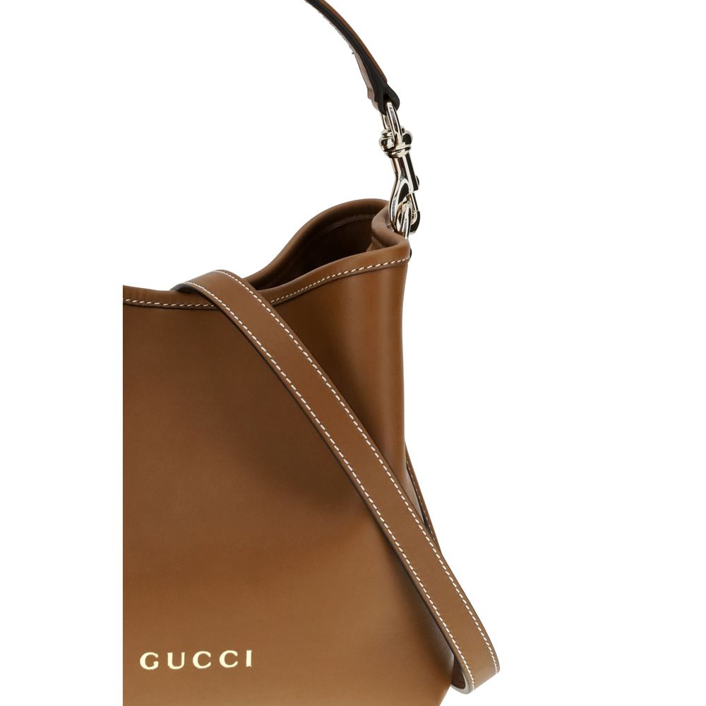 Gucci’s GG Emblem Leather Bucket Bag combines functionality and sophistication in a compact yet roomy design. Made of smooth leather, it features a removable flat leather handle with hook closure and an additional D-ring for detachable accessories. The interior is organized into two side compartments and a center compartment with snap closure, offering practicality and order. A detachable and adjustable leather shoulder strap and an automatic magnetic closure complete the design. A stylish and versatile model, perfect for everyday use.